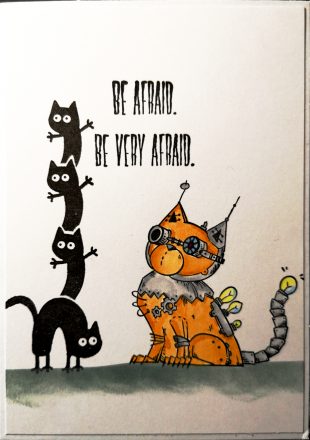 This week it’s all about our furry friends at the Daring Cardmakers‘: pets. Decide for yourselves who is scaring who (more) on my card.
